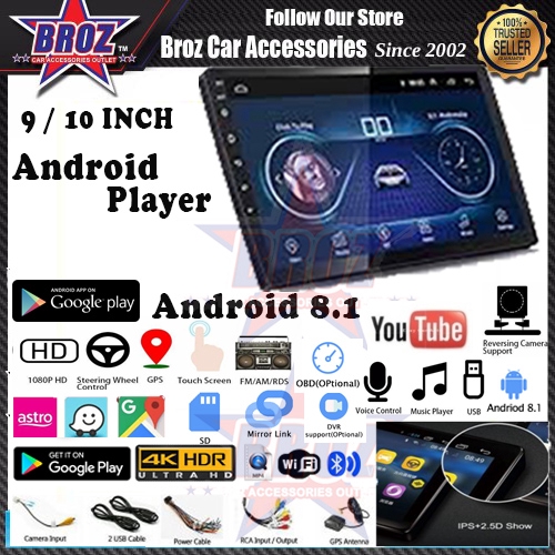 9 10 1 Inch Android 8 1 Quad Core 2 Din Car Android Player Radio Mp5 Player Bluetooth With Ips Panel 2 5d Shopee Malaysia